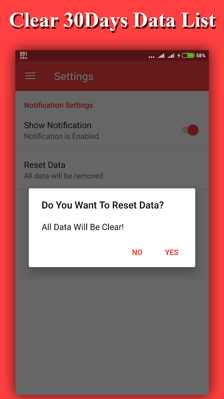 4 Internet Speed Meter Wyczyść cały ruch danych Opcja w Ustawieniach.