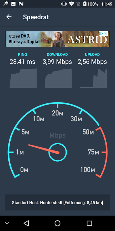 Małe bezpłatne narzędzie do pomiaru bieżącej Wi-Fi i prędkości mobilnej. Opcja testu za pomocą wartości ping i prędkości pobierania / wysyłania. Możliwość stałego wyświetlania w powiadomieniach. Przegląd zużycia danych w ostatnich dniach lub miesiącach, podzielony na WLAN i telefon komórkowy. Na podstawie danych, np. istniejące umowy z dostawcą usług mobilnych są dostosowywane i kontrolowane. Kontroluj ilość danych, które zużywasz w ciągu dnia.