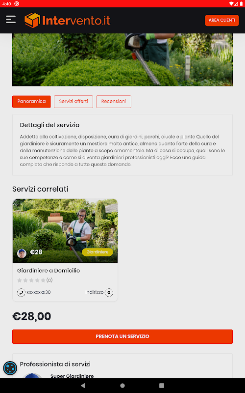 Cerca nelle Categorie il Professionista e Indica quando e dove (di persona o online) hai bisogno di eseguire il Lavoro, quindi cerca il Professionista più adatto alle tue esigenze. Pubblica qualsiasi tipo di Lavoro di cui hai bisogno, dalle pulizie di casa, alla riparazione di un computer, alla babysitter per i tuoi figli al web design al giardinaggio alla ristrutturazione