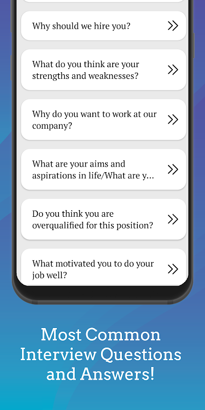 Job-ready yourself with the most common interview questions and answers. This Interview question and answer app provide you a wide range of job interview questions and answers for freshers. It will also boost your confidence, communication skills and make you job-ready.