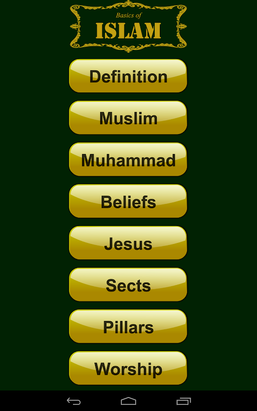 Tematyka w tej aplikacji są gwarantowane, aby dać Ci podstawowe zrozumieć o islamie, jego koncepcji i jak to działa.