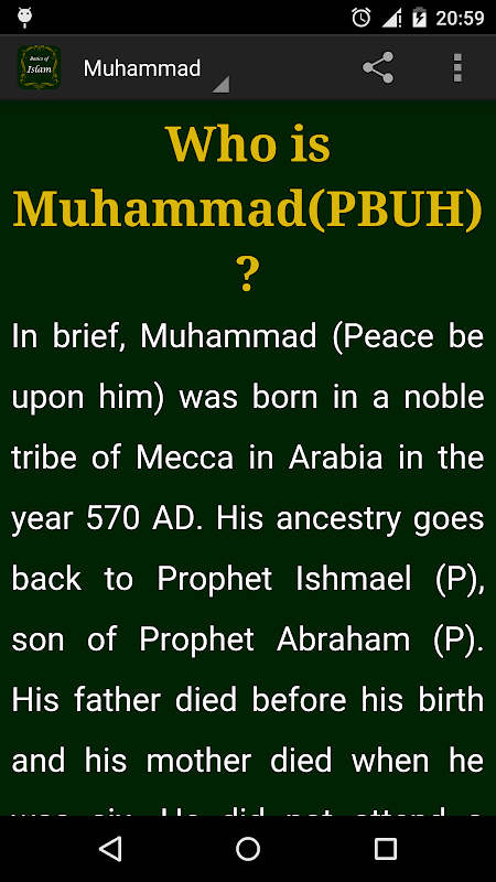 Ta aplikacja jest przeznaczona zarówno dla muzułmanów i nie-muzułmanów. Możesz dowiedzieć się o islamie czy chcą, aby usunąć błędne wyobrażenia na temat islamu. Co tak naprawdę sprawia, że ta aplikacja wyróżnia się spośród innych, jest fakt, że staraliśmy się zrobić to tak proste, jak to możliwe. Użyliśmy prosty angielski, więc użytkownik może łatwo zrozumieć informacje. Odpowiada na wszystkie podstawowe pytania, które mogą mieć o islamie.