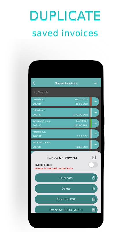 eFaktura pozwala za pomocą predefiniowanych szablonów w prosty sposób tworzyć faktury w różnych walutach i różnych językach (angielski, niemiecki, czeski, słowacki, rosyjski i ukraiński), zarządzać nimi, generować je w formacie pdf i opcjonalnie eksportować do ISDOC format.