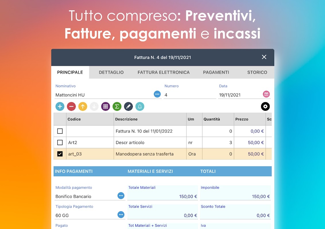 Wreszcie możesz wystawiać rachunki gdziekolwiek jesteś, nawet bez internetu. Oprócz aplikacji masz również program Windows i wersję internetową.Zalecane dla małych firm, nawet na zasadzie ryczałtu, które chcą uprościć rozliczanie zarówno we Włoszech, jak i za granicą oraz pracować z aplikacjami na iOS i Androida.