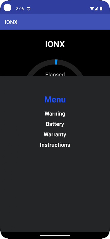 Aplikacja Timer na Androida informuje Cię o zakończeniu procesu przy zalecanych cząstkach o wielkości 10 nanometrów. W trosce o zrównoważony rozwój aplikacja na telefon zawiera: minutnik, instrukcję obsługi, etykietę ostrzegawczą, informacje o gwarancji i rozwiązywanie problemów. Aplikacja Wear OS Watch zawiera Timer z 2 alarmami i powiadomieniami tekstowymi. Wersja aplikacji IONX na zegarek jest aplikacją towarzyszącą aplikacji na telefon, ponieważ aplikacja na telefon jest najpierw przydatna do obsługi timera i instrukcji obsługi.