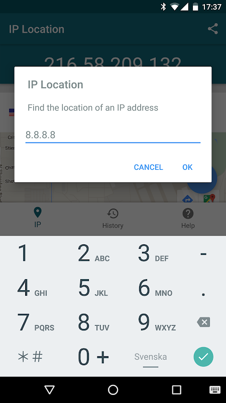 Simple and easy-to-use geolocation app that displays the location of an IP address on a map, together with additional useful data such as: