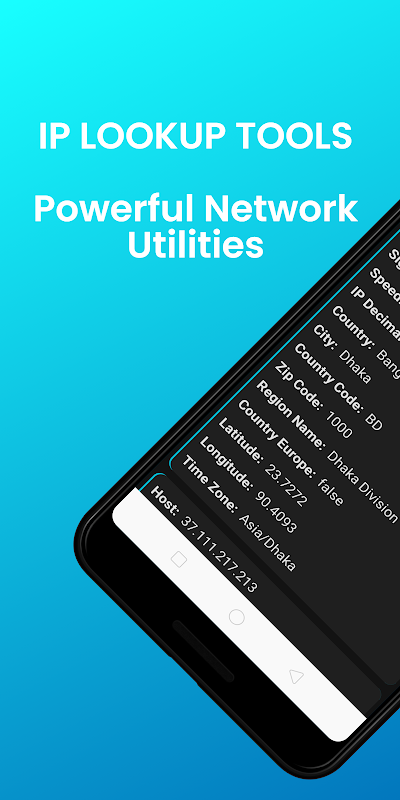 Aplikacja oferuje więcej funkcji i narzędzi sieciowych do sprawdzania aktywnych połączeń, konfiguracji sieci, wyświetlania lokalnego adresu IP, informacji o bramie, zewnętrznego adresu IP, miasta, kodu pocztowego, SSID, adresu MAC i wielu innych.