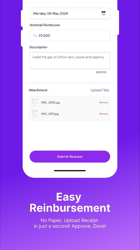 - Proces bez dokumentów papierowych: porzuć papierkową robotę! Pracownicy mogą przesyłać rachunki bezpośrednio za pośrednictwem aplikacji, co pozwala na szybki i łatwy zwrot kosztów.