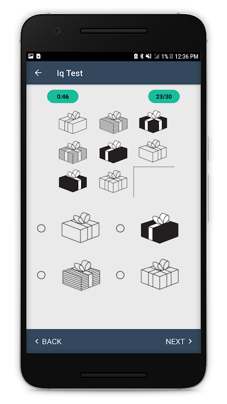 IQ test: Intelligence and Mind test offers users 2 different test types labeled as "IQ test" and emotions vs logic. In the emotions vs logic section, you will be able to measure your emotional inner structure and see your mind for yourself. In the IQ section, you will simply answer 30 questions and get an IQ score at the end of the test.