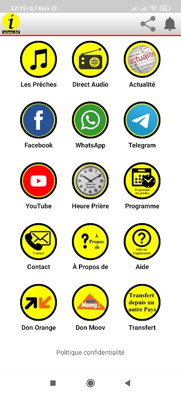 islam.bf to aplikacja, która umożliwia słuchanie lub pobieranie kazań z Burkina Faso w lokalnym języku lub w języku francuskim i innych krajach,