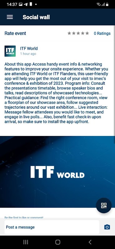 Niezależnie od tego, czy uczestniczysz w ITF World, czy ITF Flanders, ta przyjazna dla użytkownika aplikacja pomoże Ci w pełni wykorzystać wizytę na konferencji i wystawie imec w 2023 roku.