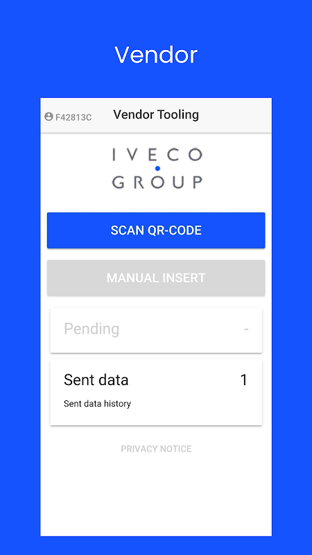 Vendor Tooling Mobile Application umożliwia dostawcom Grupy Iveco inwentaryzację narzędzi Vendor Tooling poprzez zeskanowanie oficjalnej etykiety z kodem QR.