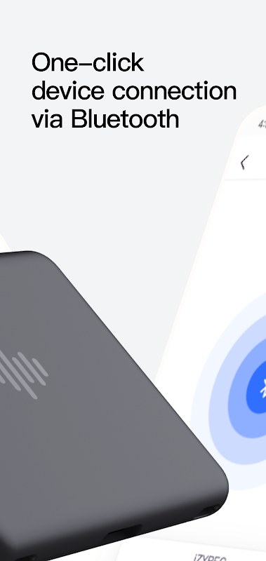 Obsługa zdalnego sterowania przez Bluetooth dla cyfrowego dyktafonu iZYREC. Zawiera funkcje do zdalnego nagrywania; synchronizacja plików nagrań; ustawienia nagrywania itp.