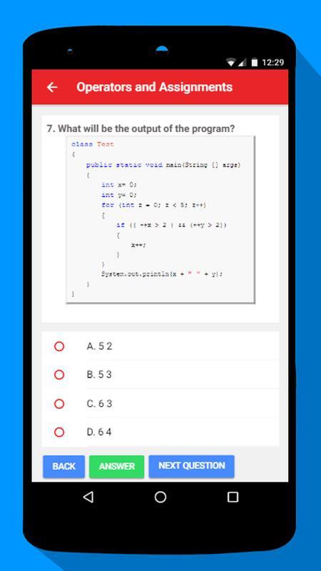 Ta aplikacja jest oparta na różnych kategoriach Core Java. Ta aplikacja zawiera 10 skategoryzowanych i 220 pytań java z rozwiązaniem. Wykonaj test i uzyskaj wynik w tym samym czasie.