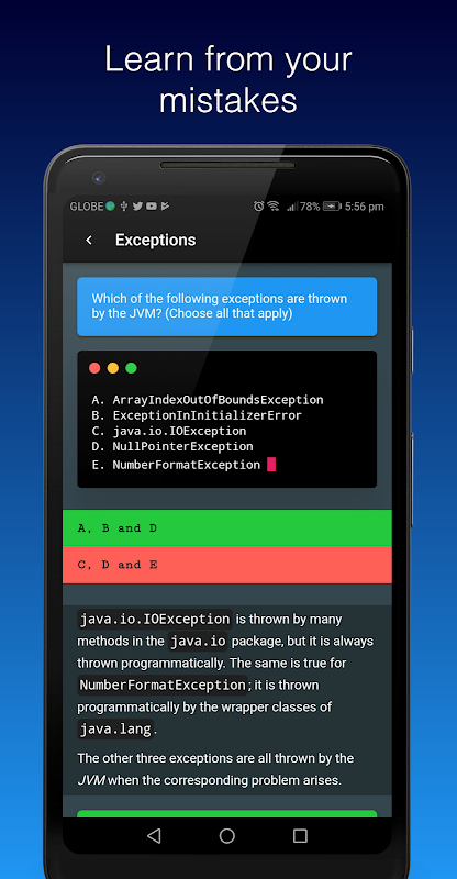 Zauważ, że ta aplikacja nie gwarantuje przechodzącą wynik nie powinny być traktowane jako recenzenta egzaminu lub egzaminu. Ta aplikacja natomiast stworzony z myślą o tym celu, to tylko dodatkowy zasób i powinny być traktowane jako takie.