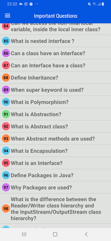This is the only app in which you can learn the whole syllabus of Java language with Tutorials ,programs and Interview questions and answers.