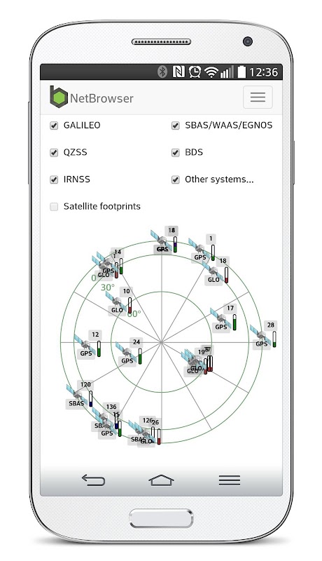 & Bull; Odbiornik danych o stanie: stół, współrzędne satelity, widnokręgu, opcje