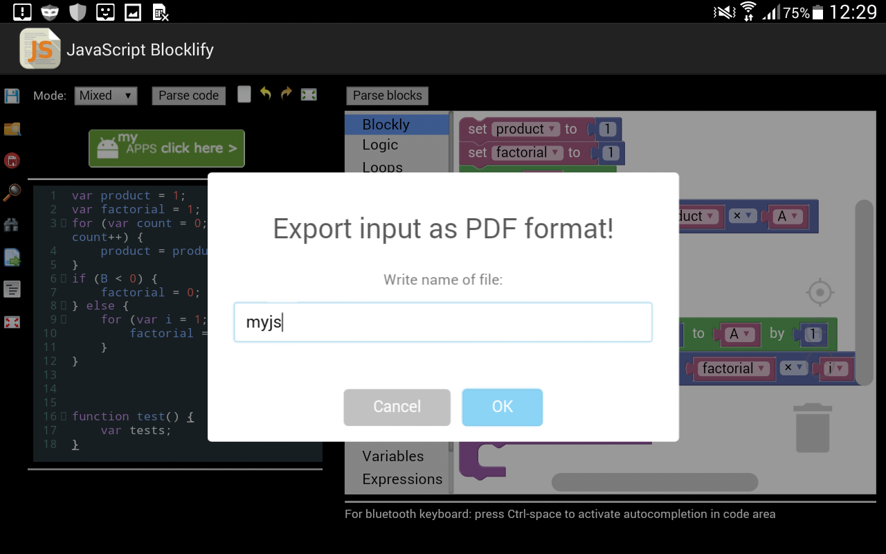 * Otwórz plik js z systemu plików Android w edytorze kodu