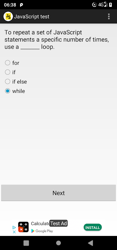 Test programowania JavaScript. Łącznie 212 pytań, 20 wybranych losowo.