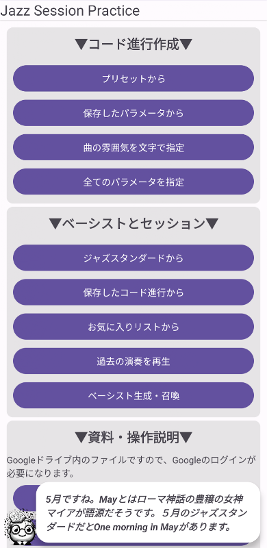 ① Możliwe jest generowanie progresji akordów w oparciu o około 30 typów parametrów. Można go wykorzystać do „ćwiczeń improwizacji opartych na akordach”, „wsparcia kompozycji” lub „lekcji jazzu”.