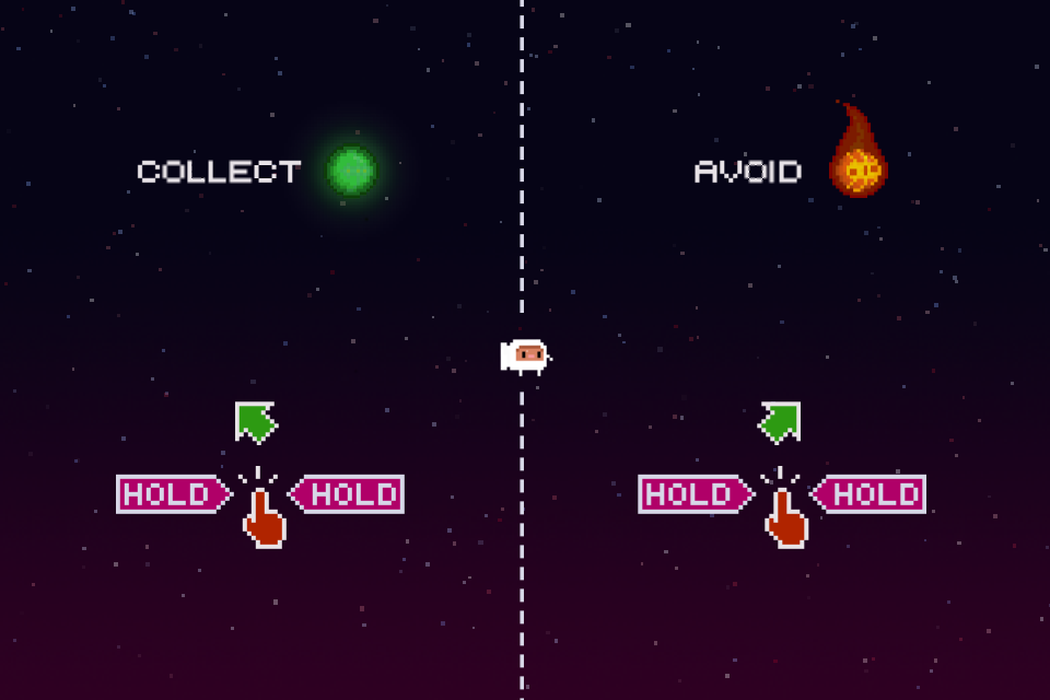 - Tap and hold left/right side of screen to fly your jetpack