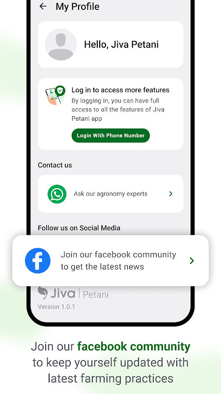 Jiva Petani to najlepszy towarzysz rolnictwa, zaprojektowany, aby ułatwić Ci życie, zwiększyć produktywność i poprawić ogólne wyniki rolnictwa. Dołącz do naszej kwitnącej społeczności już dziś i poznaj moc Jiva Petani, która pomoże Ci w Twojej rolniczej podróży.