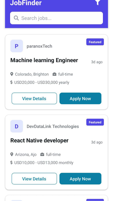 Szukasz kolejnego ruchu w karierze? Job Finder łączy osoby poszukujące pracy z najlepszymi pracodawcami na całym świecie! Niezależnie od tego, czy szukasz pracy na pełny etat, w niepełnym wymiarze godzin, zdalnie czy jako freelancer, nasza aplikacja sprawia, że poszukiwanie pracy jest proste, szybkie i skuteczne.