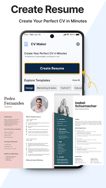 Chcesz bez wysiłku stworzyć profesjonalne narzędzie do tworzenia CV lub kreatora CV? Inteligentna aplikacja do generowania CV CV sprawia, że jest to proste i szybkie! Dzięki ponad 50 szablonom CV, każdej bibliotece CV i kreatorowi CV dostępnej w 15 wersjach kolorystycznych, masz dostęp do ponad 750 unikalnych projektów CV – zarówno online, jak i offline, w rzeczywistości w aplikacji do edytowania CV.