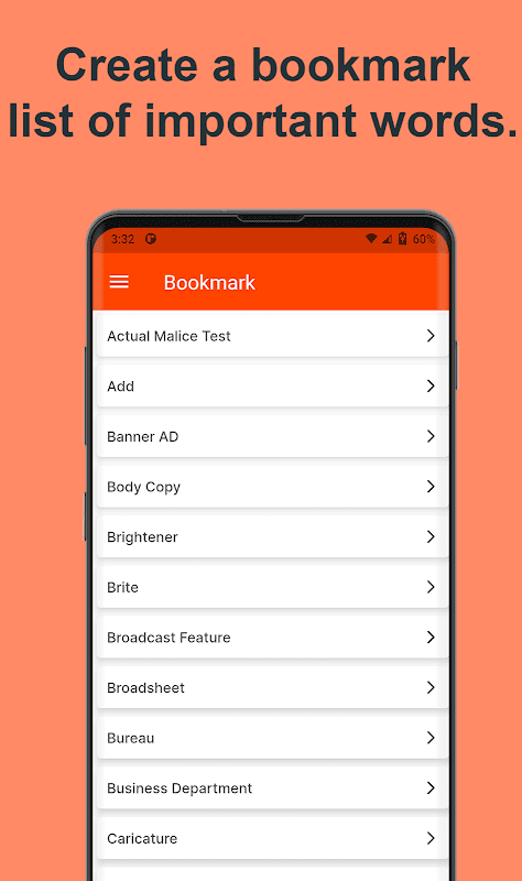- User can bookmark word easy to remeber.