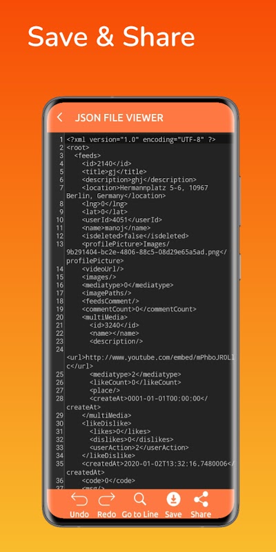 Json Editor i File Reader to bardzo przydatne narzędzie do przeglądania plików JSON (JavaScript Object Notation). Edytor JSON przeanalizuje twój plik json na dane ciągu json, a następnie przekonwertuje ciąg json na przyjazny, czytelny format. Json Editor and File Reader lub Json file opener umożliwiają również edycję pliku json i xml w przyjaznym dla użytkownika formacie.