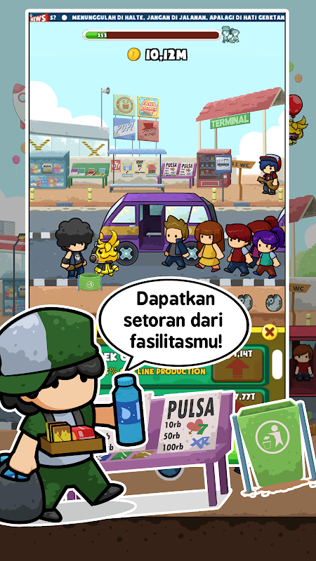 Bangun terminalmu dan jadilah juragan terminal! Buat penumpang datang dan berangkat dari terminalmu, dapatkan setorannya, tingkatkan angkutan serta berbagai fasilitas untuk meningkatkan kenyamanan penumpang di terminalmu! Semakin banyak penumpang dan fasilitasmu, semakin besar setoran yang kamu dapat! Kalo ada yang ga kebagian naik gimana gan? Minimal masih bisa dapet telolet!
