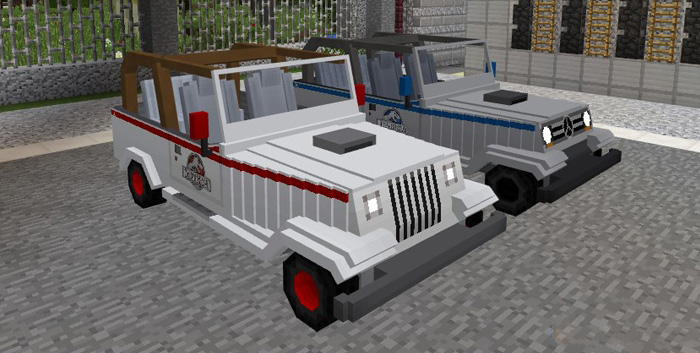 Так же в мир добавлены настоящие джипы, для исследование опасного доисторического мира динозавров. В их багажнике вы сможете возить необходимые припасы и оружие. Мир приключений ждет вас!