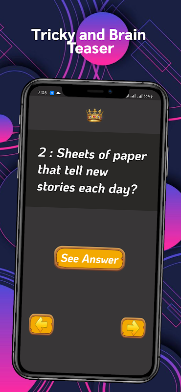 Gra Just Riddles With Answers polega na odgadnięciu odpowiedzi na zagadki i kliknięciu opcji wyświetlania, aby wyświetlić opcje.