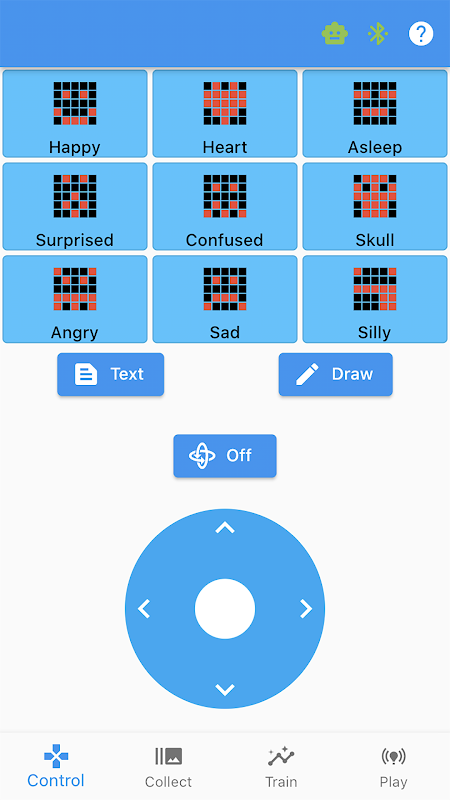 - Stuknij określony wyraz twarzy, aby zmienić twarz na wyświetlaczu LED robota, lub użyj przycisku rysowania lub tekstu, aby dostosować wyraz twarzy lub tekst, który pojawia się na wyświetlaczu LED.