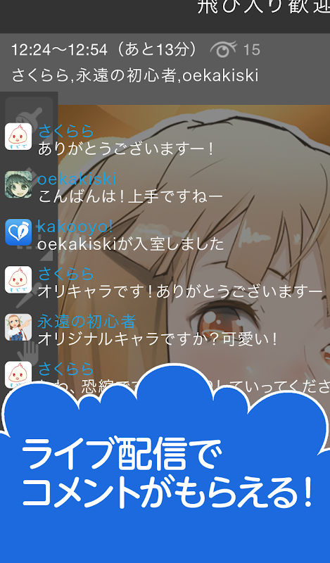 Ponadto, jeśli narysujesz z kimś obrazek, ten sam obrazek będzie wyświetlany w czasie rzeczywistym na każdym smartfonie. Jeśli znajdziesz towarzysza do rysowania, pracujmy razem. Jeśli ktokolwiek może wskoczyć i wziąć udział, być może będziesz mógł nagle współpracować z ilustracją!