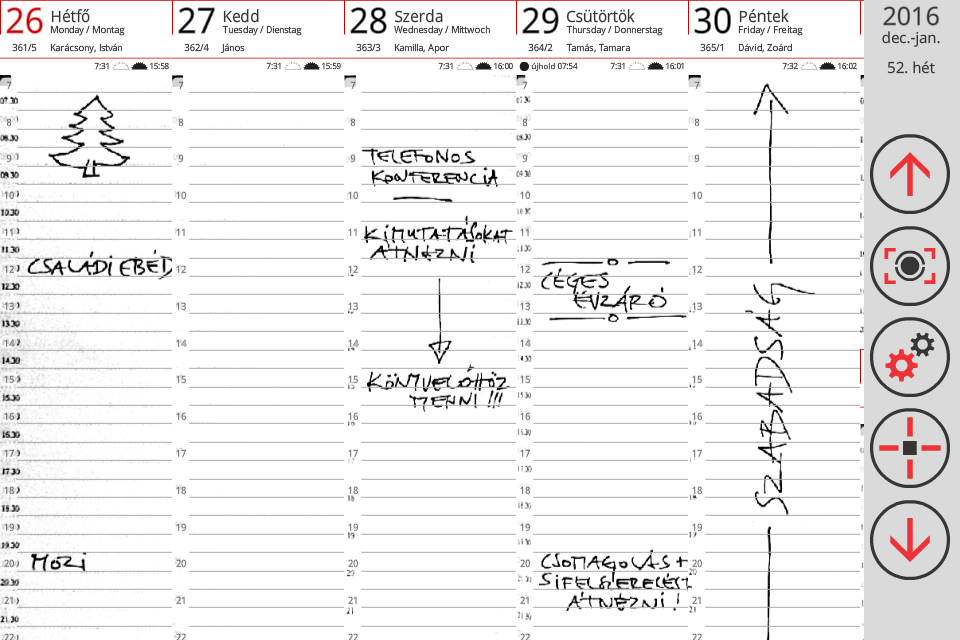 Sporządzanie notatek w systemie Kalendapp® határidőnaplódba. używać pól pomiędzy oznaczeniami. Napisz, skiccelj, robić notatki!
