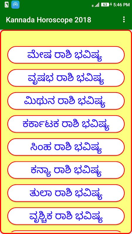 Ten dzienny horoskop kannada na rok 2021 w aplikacji na Androida Rashi Bhavishya poznaje przyszłość w kannadzie, a także poinformuje Cię o Twojej przyszłości rashi bhavishya w języku kannada w 2021 roku.
