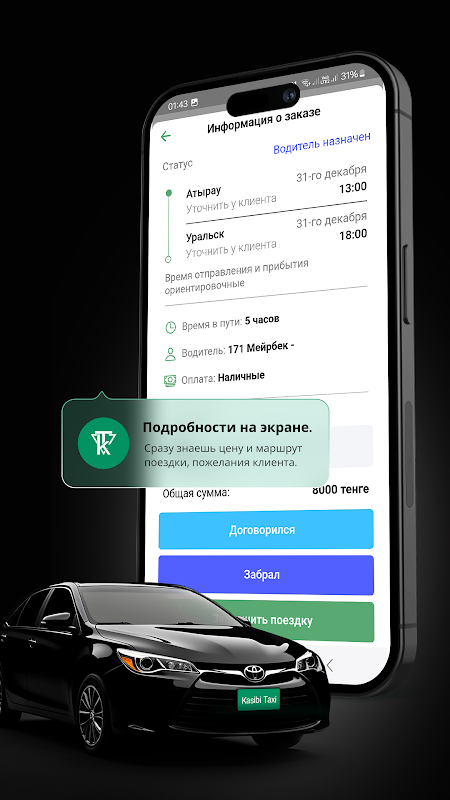 „Kasibi Driver” to aplikacja mobilna przeznaczona specjalnie dla kierowców, którzy przystąpili do usługi „Kasibi Taxi”. To niezawodne i wygodne narzędzie do zarządzania podróżami międzymiastowymi i dostawą przesyłek.