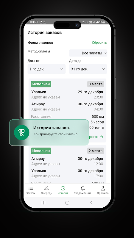 Dzięki „Kasibi Taxi” możesz przyjmować zamówienia na przejazdy międzymiastowe i przesyłki, a także efektywnie planować swój harmonogram pracy. Otrzymuj powiadomienia o nowych zamówieniach i wybieraj te, które są dla Ciebie najwygodniejsze.