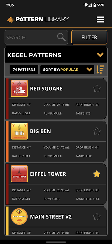 Przeglądać i wyświetlać wzory pasa i przekazuje je do kompatybilnego Kegel Lane Maszynie bezpośrednio z telefonu lub tabletu!