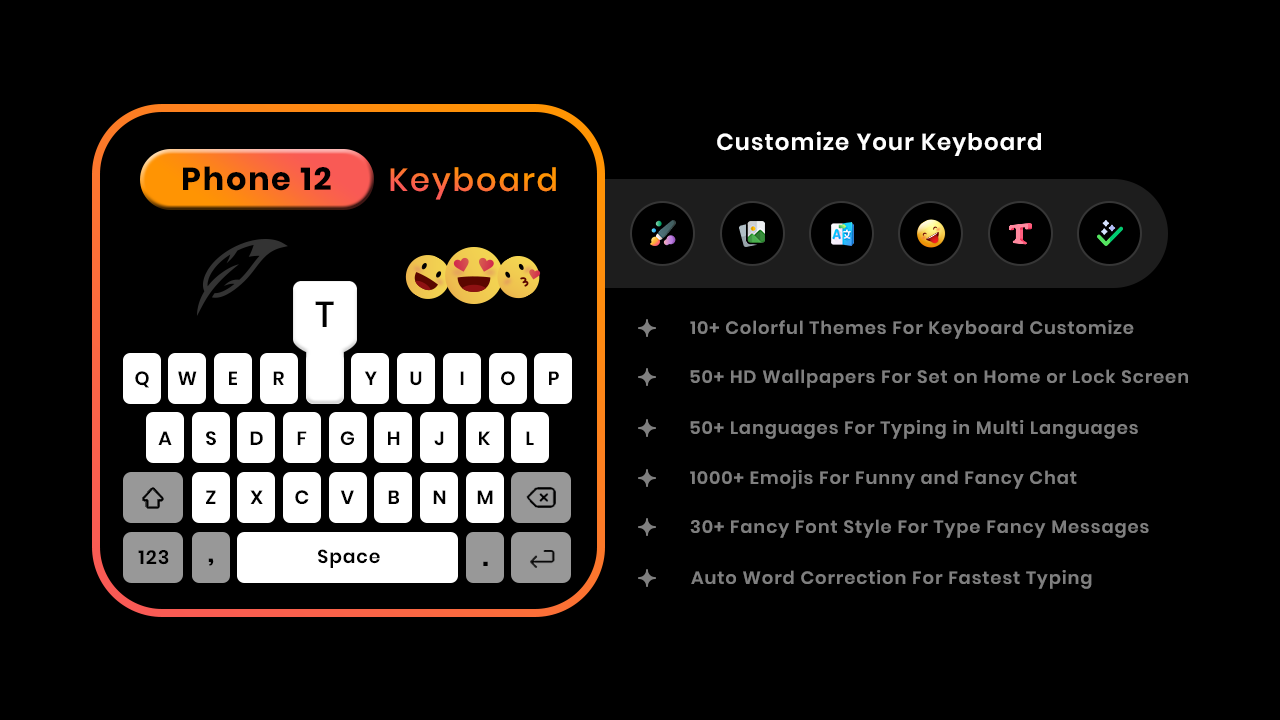 Start enjoying this amazing new way to personalize your device with keyboard themes and wallpapers ! Take the Keyboard For iPhone 12 and have your great experience now.