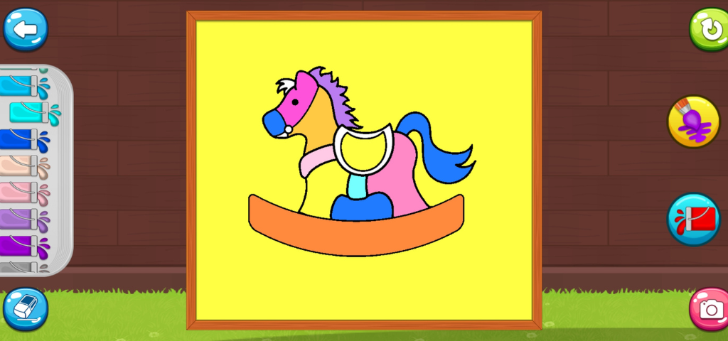 Aplikacja zawiera różne strony do kolorowania, z których każda ma własny, niepowtarzalny motyw, w tym zwierzęta, owoce, warzywa i wiele innych. Strony do kolorowania zostały zaprojektowane tak, aby były proste i łatwe do pokolorowania, z odważnymi konturami i dużymi przestrzeniami do wypełnienia kolorem. Dzieci mogą wybierać spośród szerokiej gamy kolorów i przełączać się między kolorami jednym dotknięciem dzięki funkcji słodkiego głosu