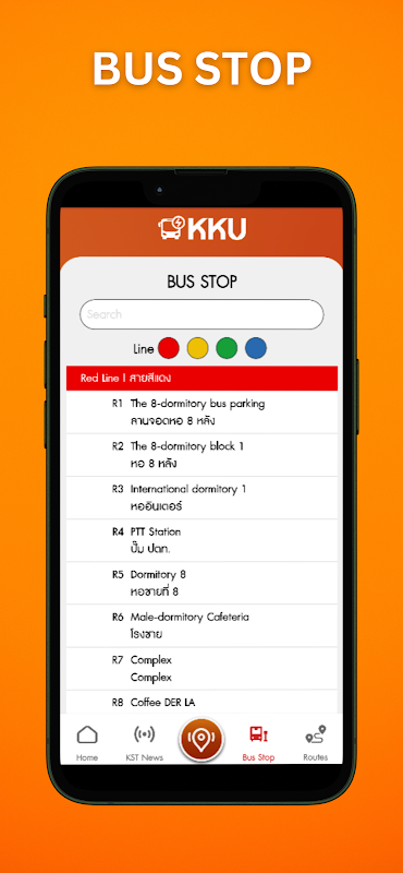 - สามารถดูตำแหน่งของรถบัสได้จากการกดเบอร์รถที่กำลังจะมาถึงสถานี