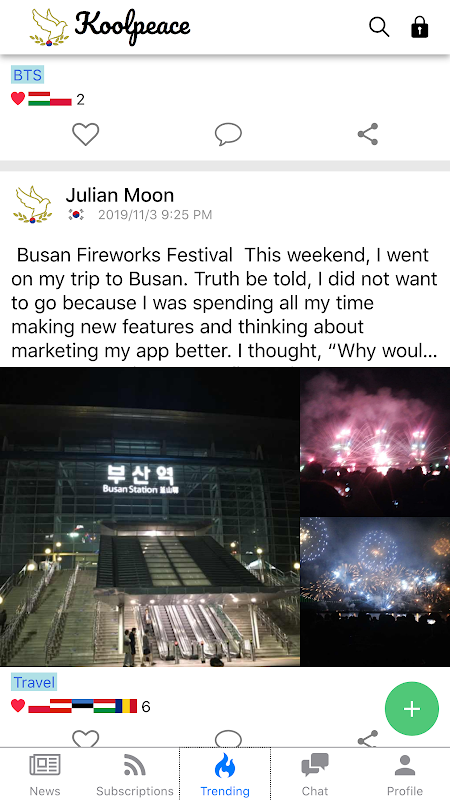 Koolpeace to koreański Metaverse, który umożliwia ludziom udostępnianie treści na temat kultury koreańskiej, bezpośrednie wspieranie koreańskich twórców treści za pomocą zdecentralizowanych finansów (DeFi) i komunikowanie się ze sobą w celu nawiązywania międzynarodowych przyjaźni w wirtualnej rzeczywistości 3D (VR), która pozwala na wciągającą całość Koreańskie doświadczenie. Naszą misją jest promowanie pokoju i harmonii na świecie poprzez falę koreańską (Hallyu).
