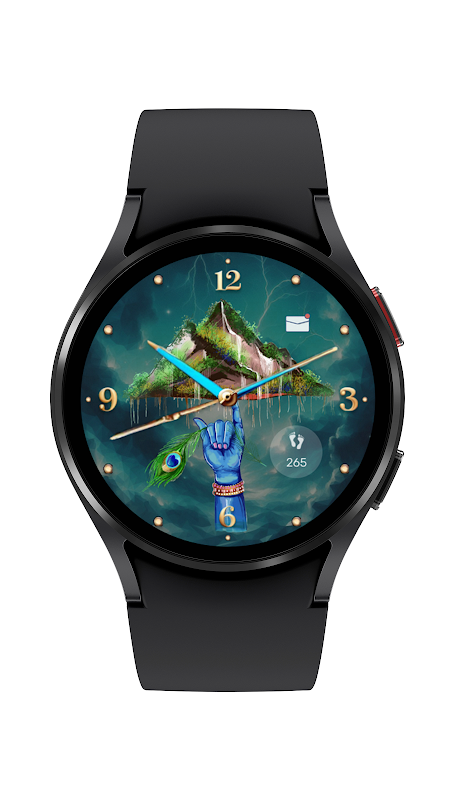 Lord Kryszna podnosi tarczę zegarka Govardhan Hill dla zegarków Wear OS i Galaxy.