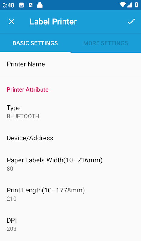 Ta aplikacja wykorzystuje technologię transmisji połączenia Bluetooth do korzystania z drukarek kodów kreskowych, wywołując usługi drukowania kodów kreskowych w celu przesłania treści, która ma zostać wydrukowana do drukarki. Obsługuje także połączenie sieciowe i fizyczne połączenie USB. Interfejs zasadniczo obejmuje zewnętrzny interfejs drukarki koniec telefonu komórkowego