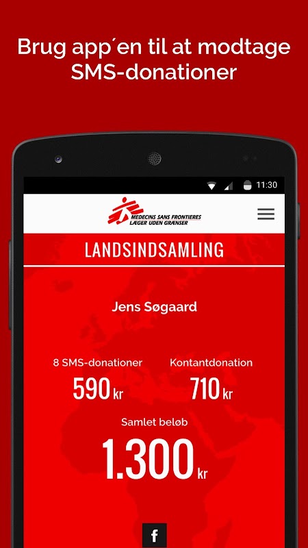 Indsamlingsapp til Læger uden Grænsers landsindsamling.