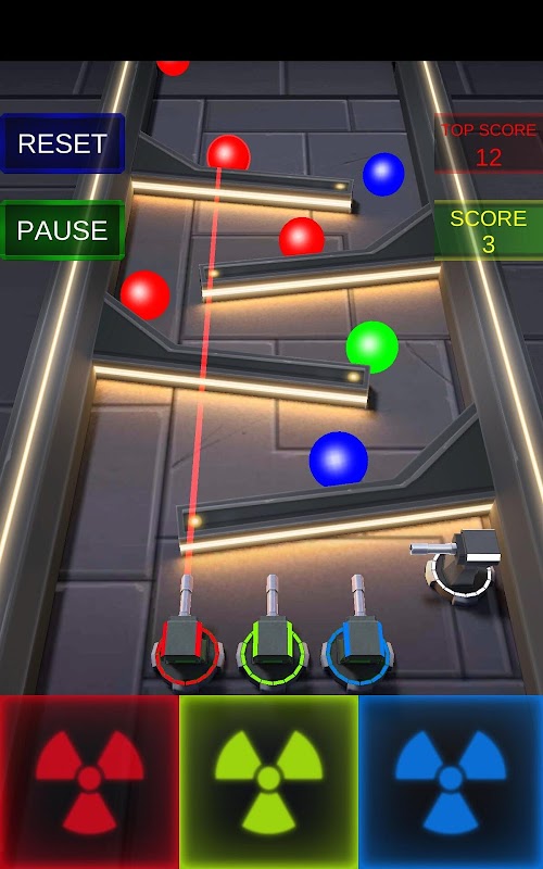 Użyj kolorowych drukarek laserowych armat zniszczyć spadające kulki. Red ball - czerwony laser.