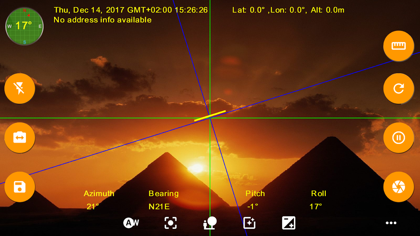 • Wyświetlaj azymut, kierunek, pochylenie lub kąty obrotu. (Wymagane jest pole magnetyczne)