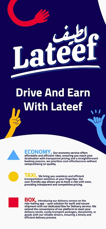 Dołącz do Lateef, wiodącej aplikacji do transportu pasażerów w Egipcie i zacznij zarabiać na każdym przejeździe. Lateef oferuje kierowcom niezawodny i satysfakcjonujący sposób zarabiania pieniędzy według własnego harmonogramu. Niezależnie od tego, czy chcesz prowadzić samochód w pełnym czy niepełnym wymiarze godzin, Lateef zapewnia elastyczność i wsparcie, których potrzebujesz, aby odnieść sukces.